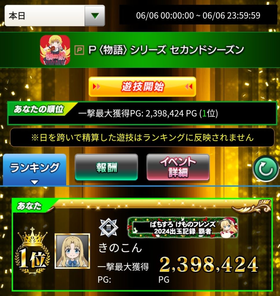 と言うのも0時を過ぎてプレイしているので一撃ランキングも狙えます