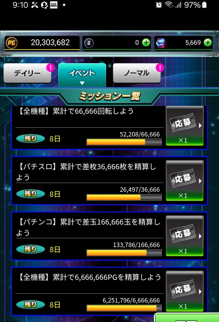 PGも7倍と比べるとアレですが200000PG程埋まっています