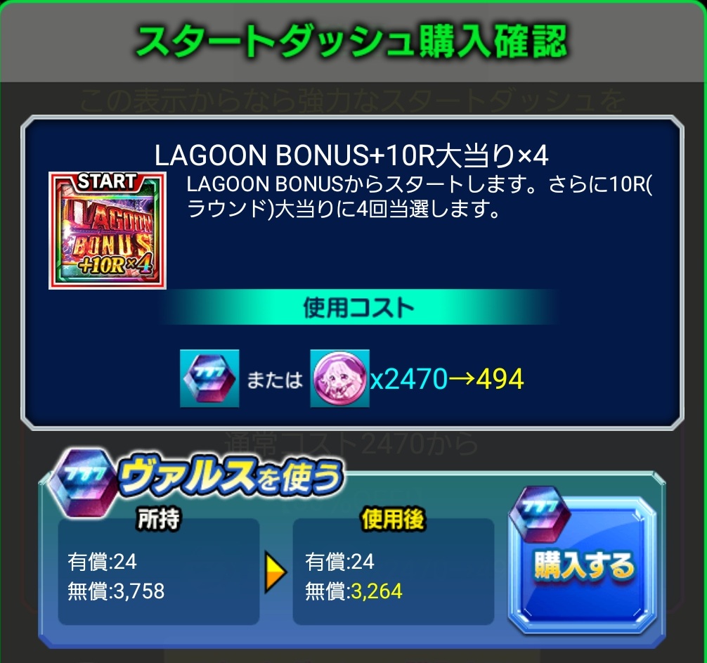 1回500ヴァルス程度で6000発スタート。ちょっと上振れるだけで終わります