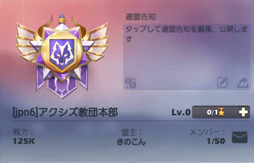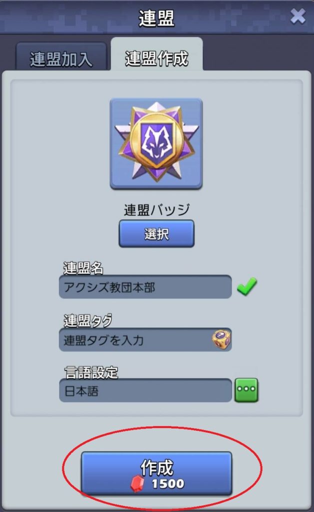 今回はアクシズ教団本部と言う同盟を作ろうとしたのですが