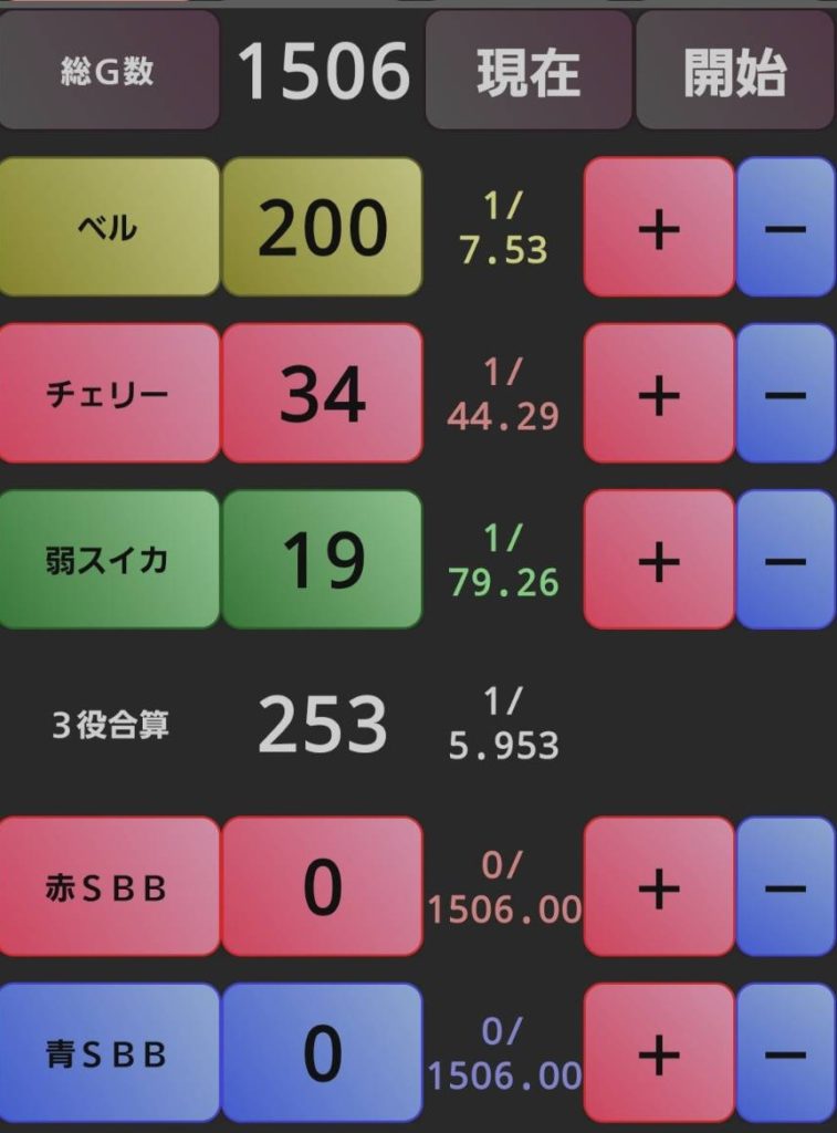 なんで、個人単体のデータだと2000Gで黄色BIG1のREG4ですね