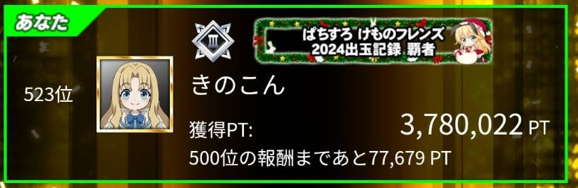 今回は転スラのミッションが10000ポイントなのであれですが、30000~50000ポイントのミッションですと、パチのイベで1位とって200万ポイント取得してもレジェンドセブンに入れないですからね