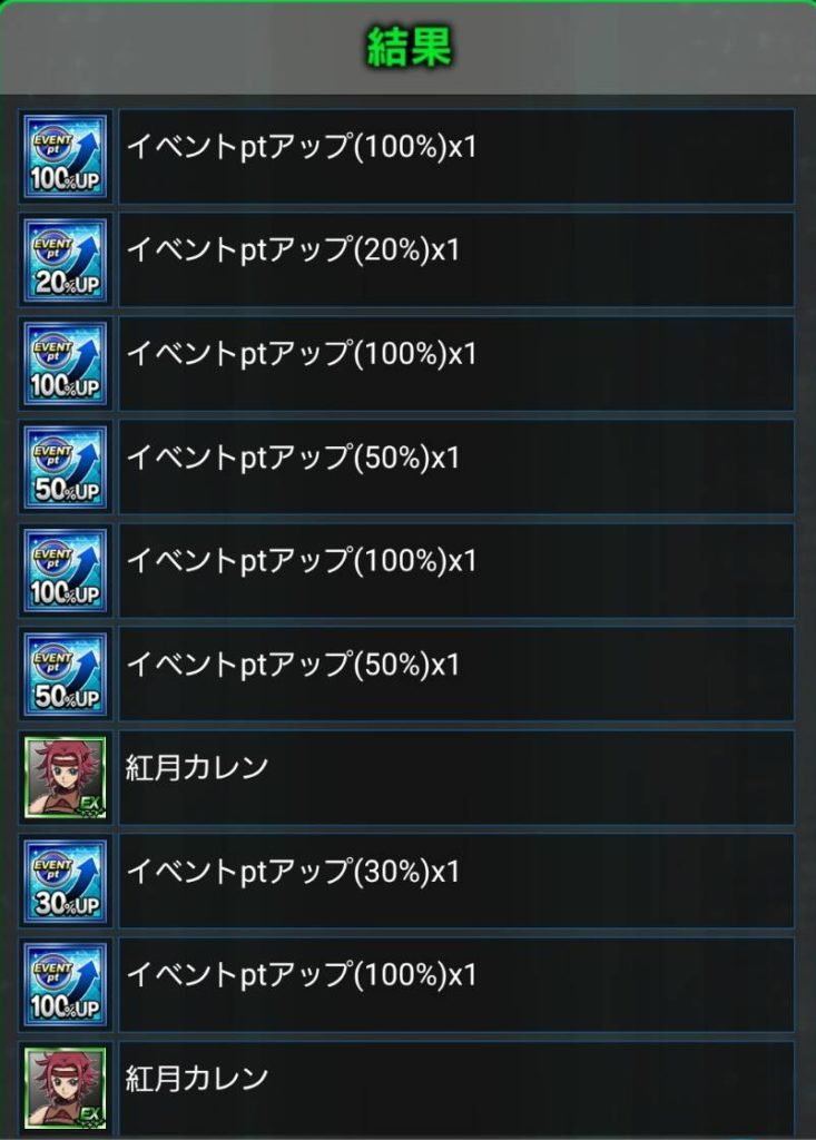 また10連ガチャを回した場合は100%アップも何個か手に入ると思いますので