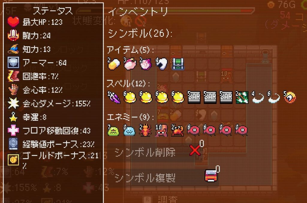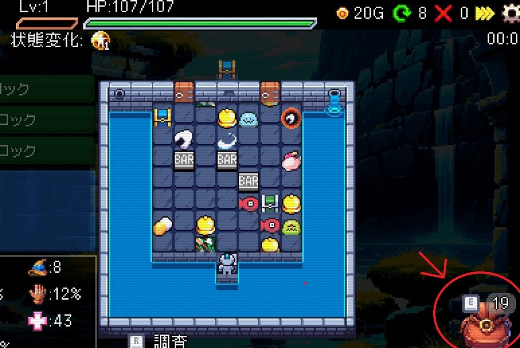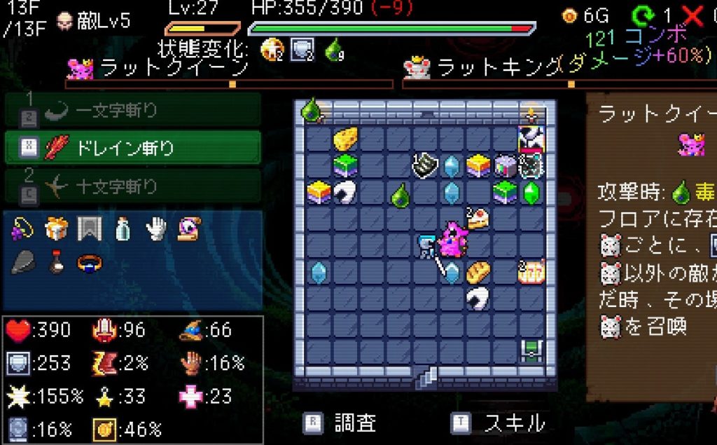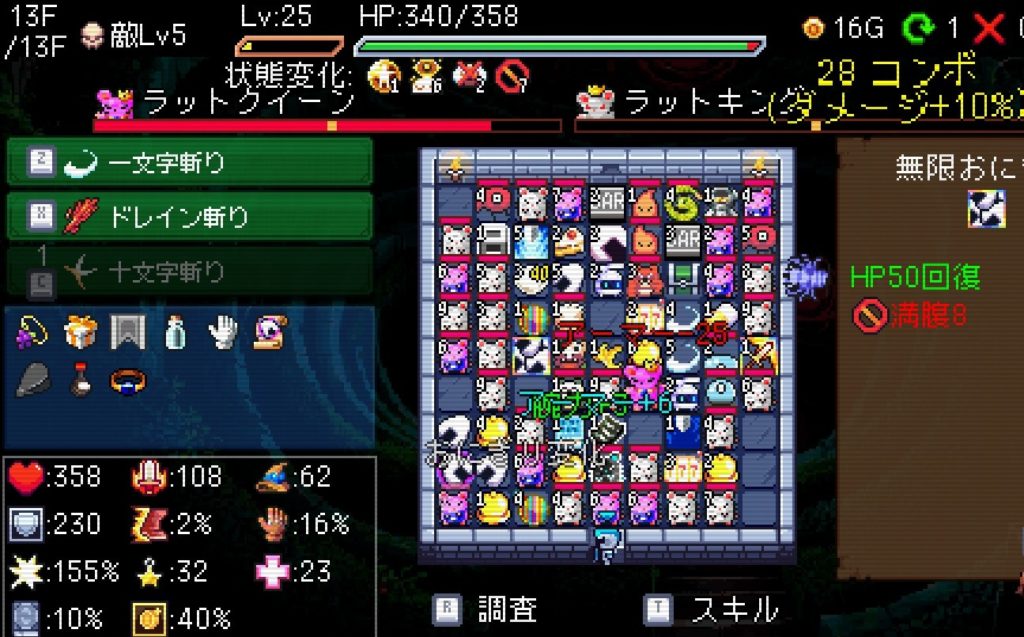 「運全振りの風来のシレンっぽい」と言っていましたが、何時間か触った感じだとローグライク要素を残しつつ詰将棋に近いかな?と感じました