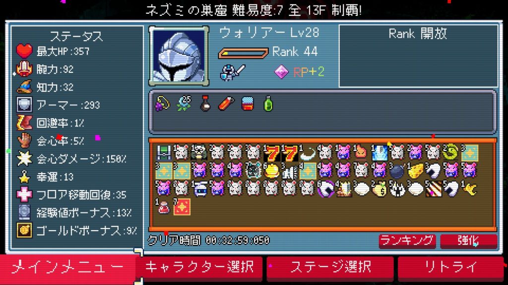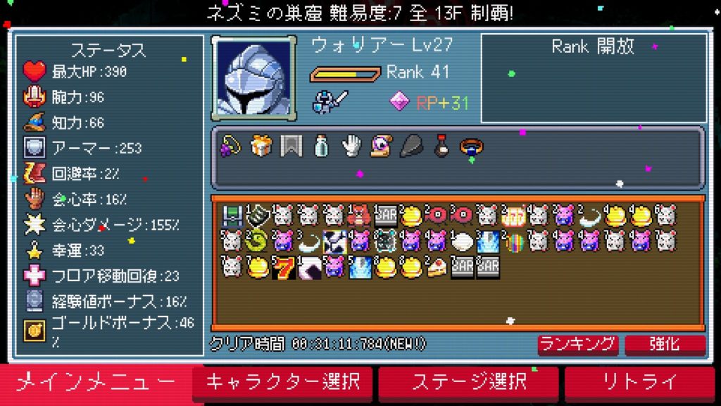 挑戦は5回程。やっぱりローグライクは慣れですねw