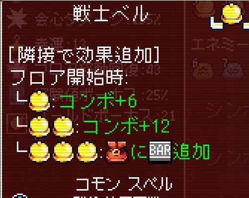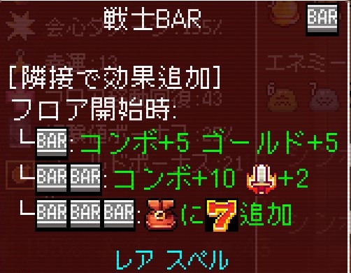 更に3個隣接すると上位スペルの戦士BARがバッグに追加されます