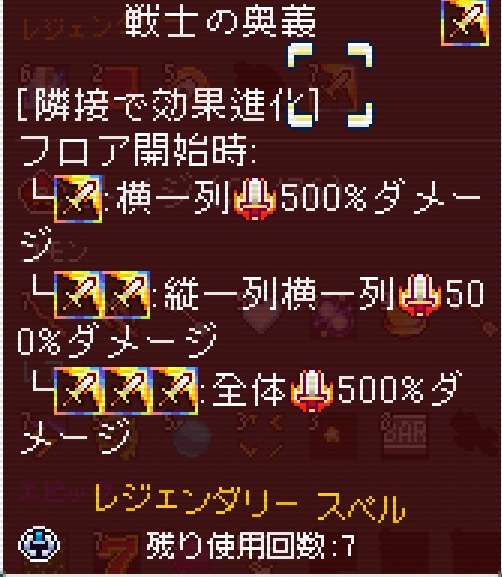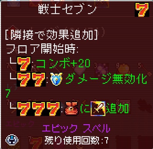 戦士セブンが3個隣接すると戦士の奥義が