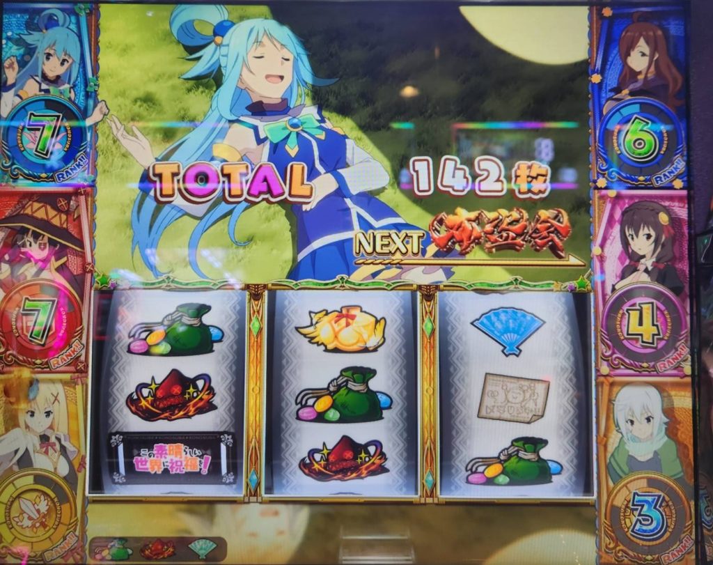 普通のAT機だと基本的には無理ですが、このすばだと再プレイ範囲内でそのまま走りきれる時もあるのがこの台の魅力の1つですよね