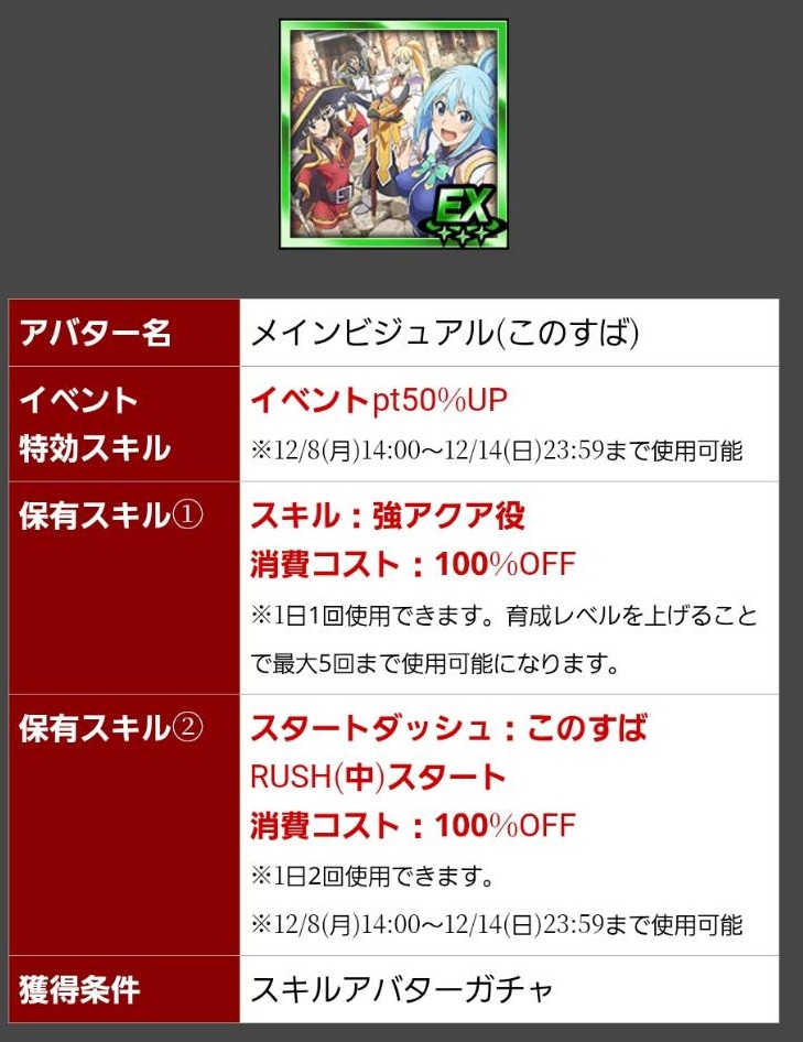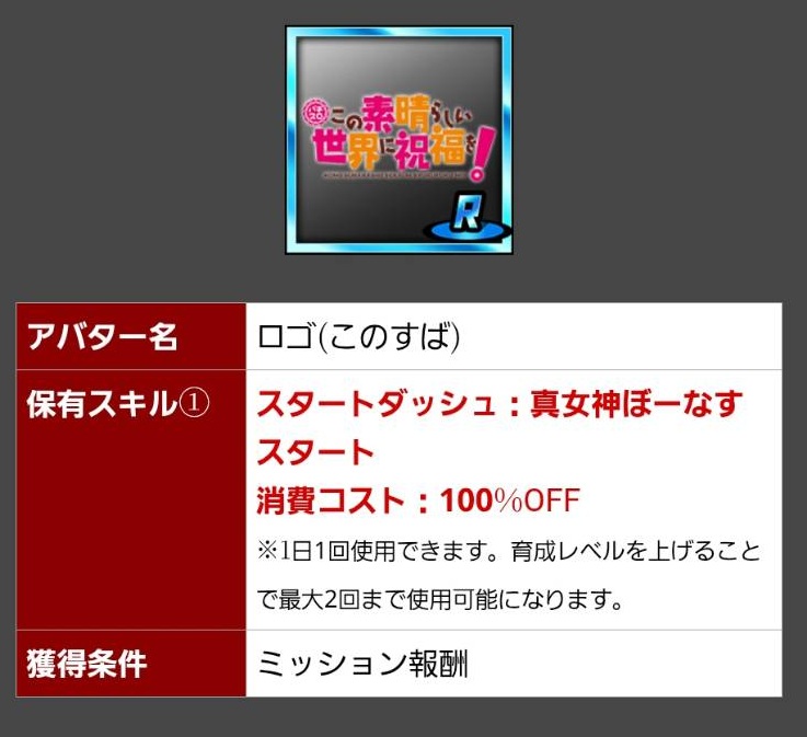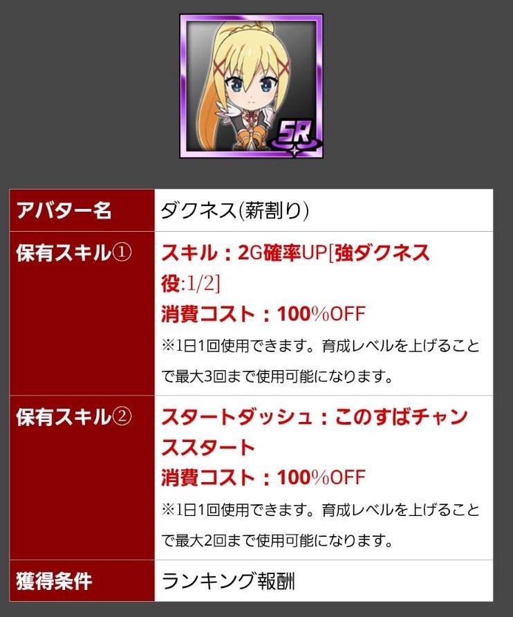 ダクネス、ウィズ共に保有スキル②が「このすばチャンススタート」と言う事で