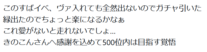 ガチャ露骨に引かれてないですよね。こんなことなら最初から半額分だけで止めてりゃ良かったっす、、、