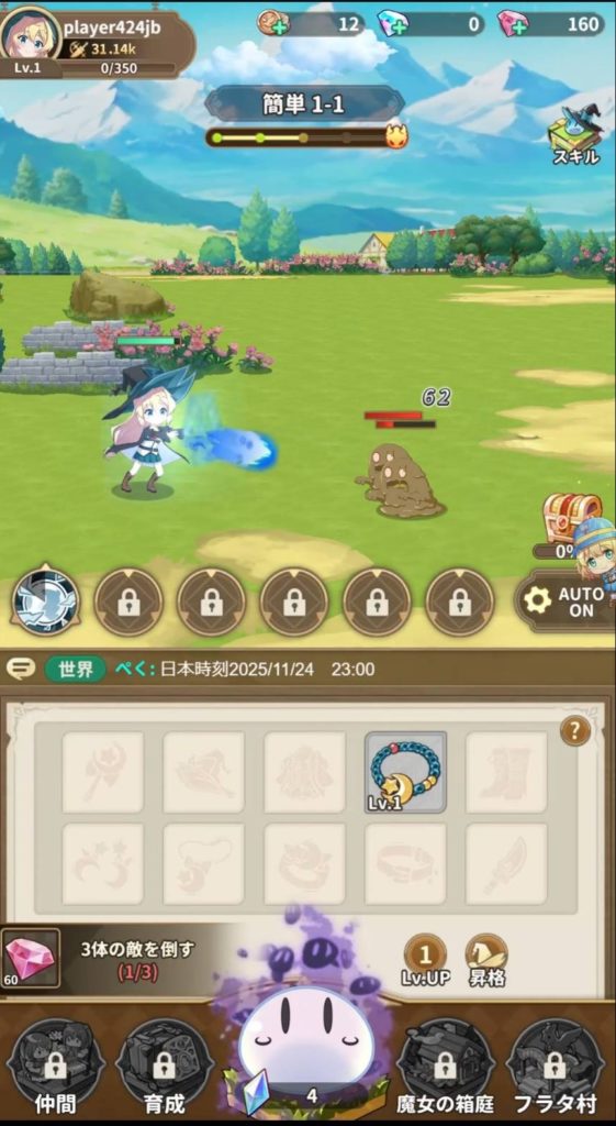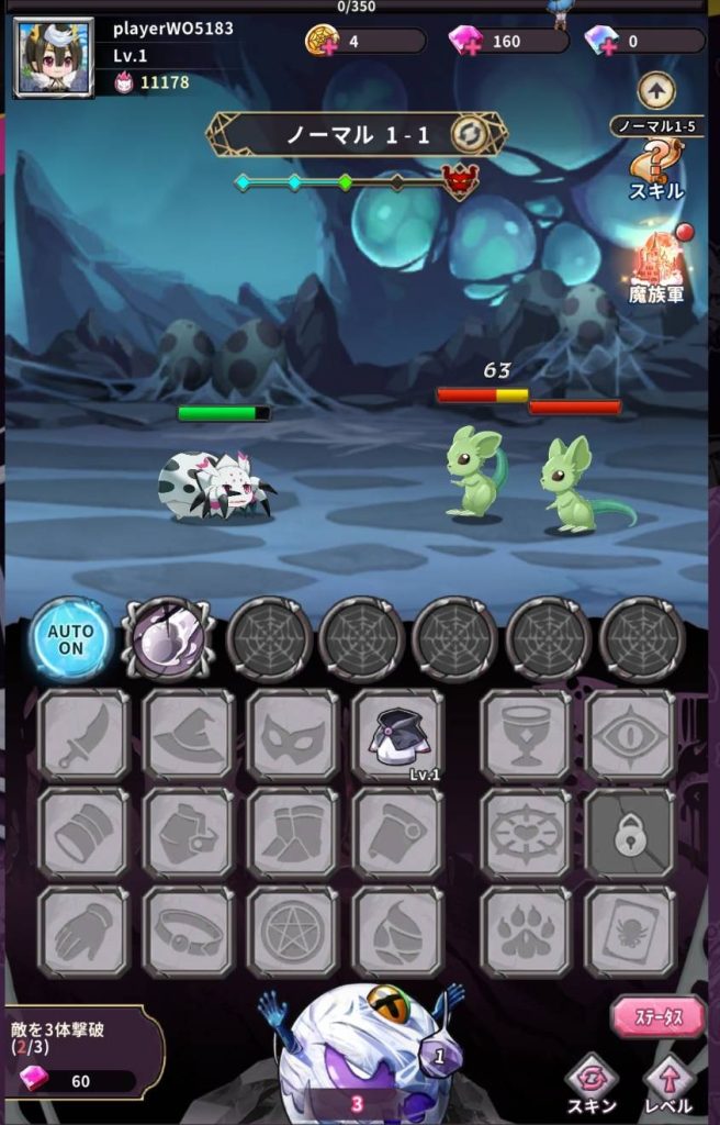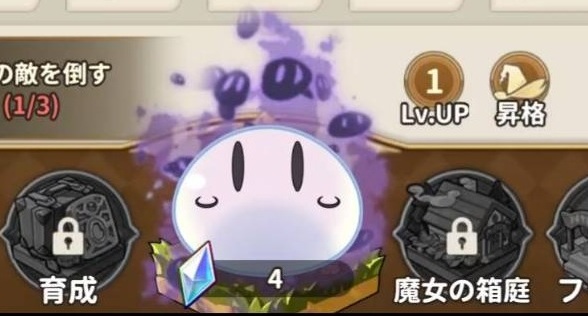 原作と同じく、中央に配置されたスライムを殴る事でレベルアップをする