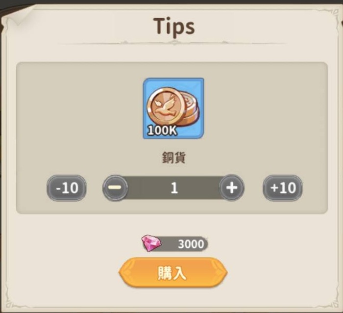 例えば、100kのゴールドをダイヤで入手するには3000ダイヤが要求されますが