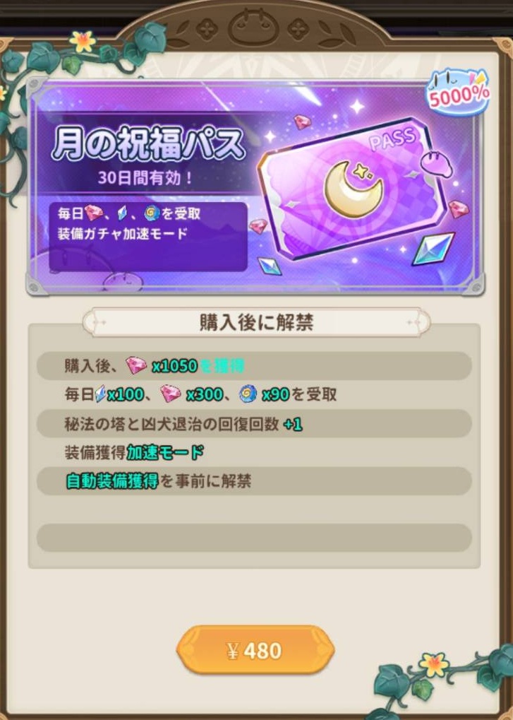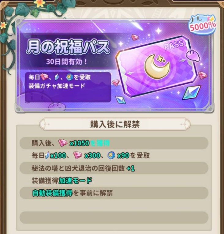 これは初日から受け取れる筈なので、30日間で魔法石3000個とダイヤが9000個
