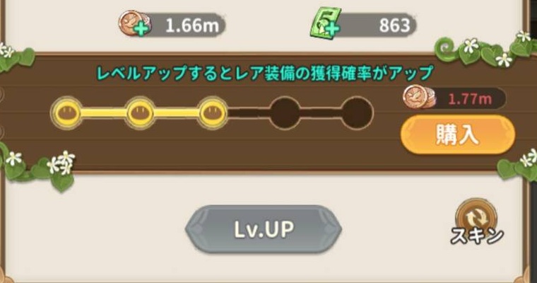 最初はコモン装備しか落とさないのですが、レベルが上がる事で高レアリティの装備を落とす様になります
