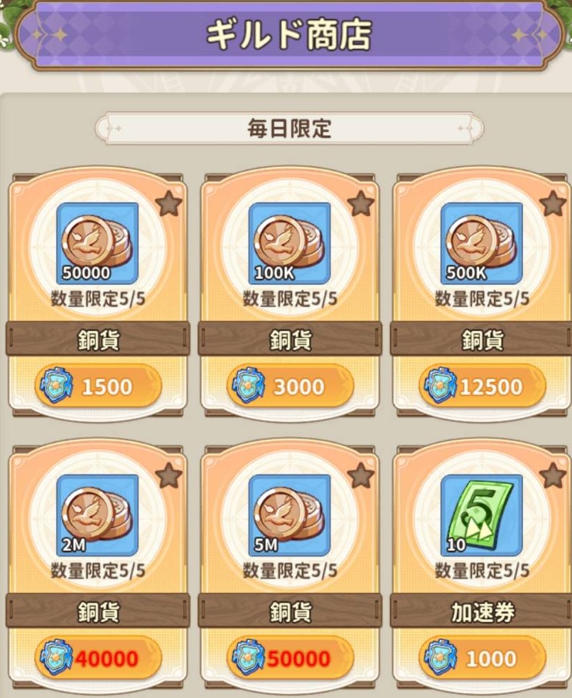 LV5ギルドのギルド商店だと魔法石が250個購入できます