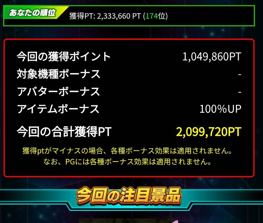 報酬は積み上げ方式ですが、ランキングはマイナス収支も計上するので、実際の獲得ポイントはもう少し多くなります