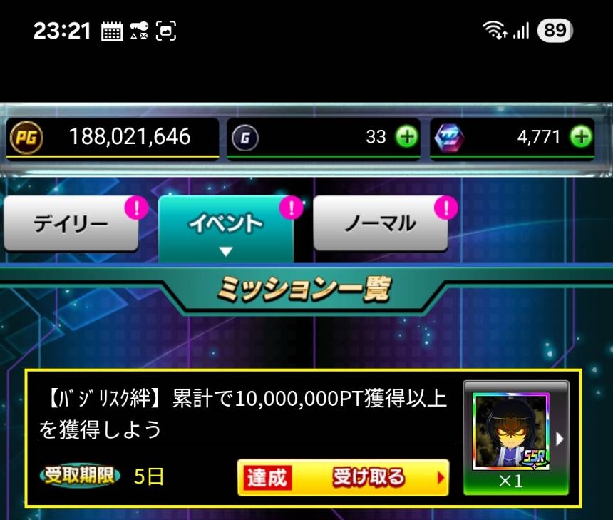 スキルアバターの消化を完全放棄して7日の設定6確イベントを絆で走り続けて無事にSSRを獲得できました