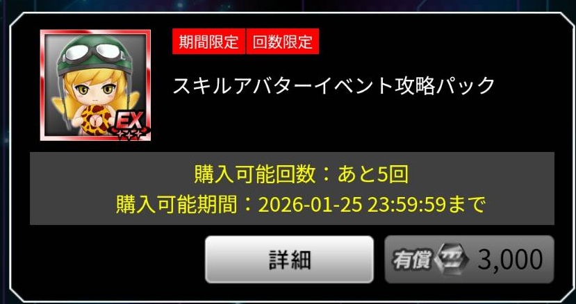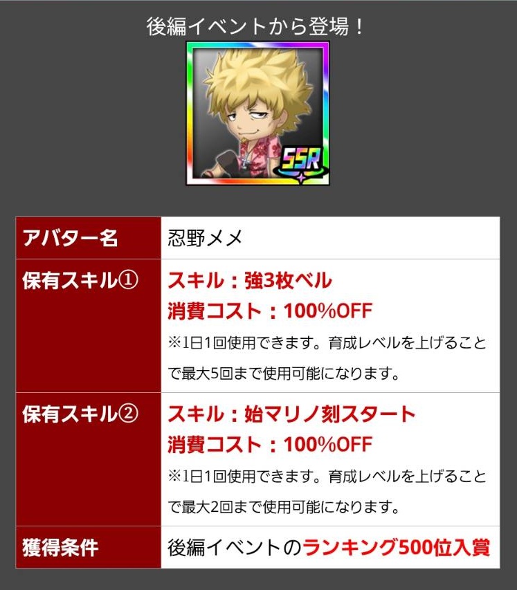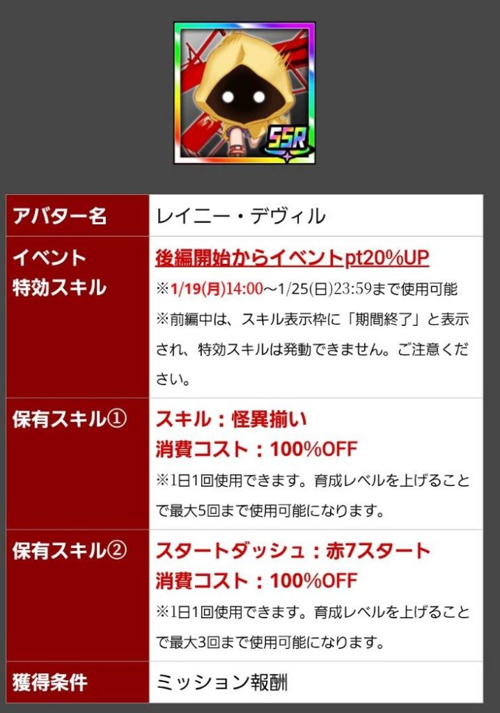 前編/後編の二部構成で、前編では後編のポイントアップスキルアバターが手に入ります