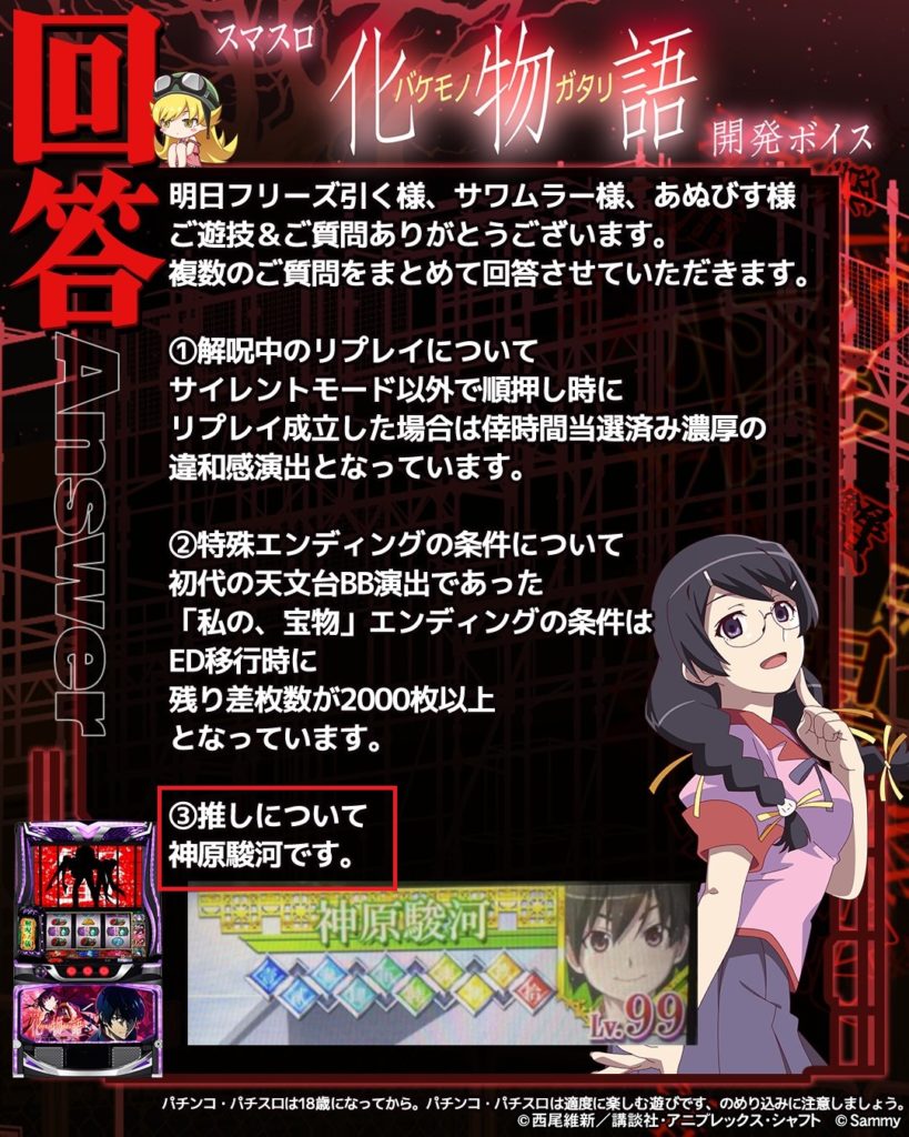 スマスロの方が全く出る気配がありませんので、私も化物語の方を走らせて頂こうと思います