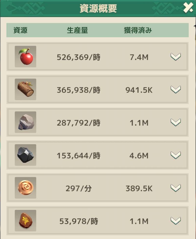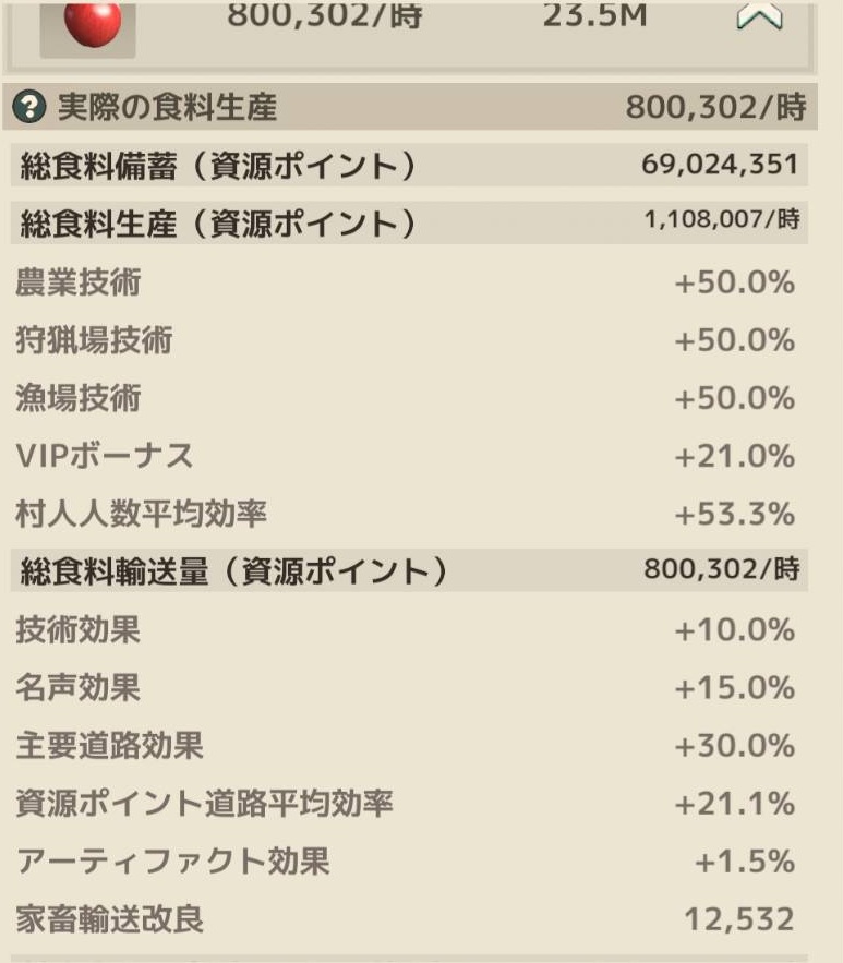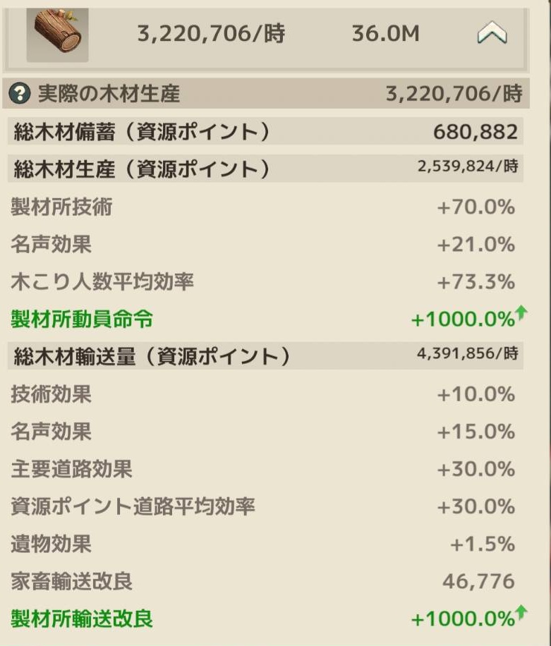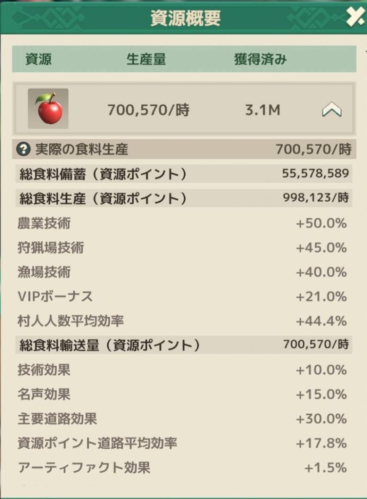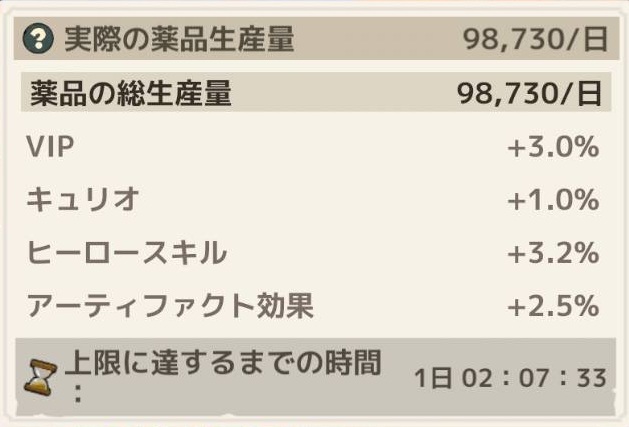 VIP効果や研究効果、後は採集速度50%アップアイテムを使っていますが、それらが除外されている気がします