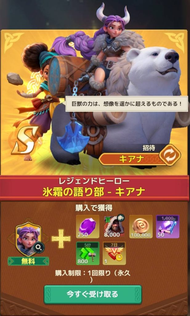 キアナのパックが無料で貰えました