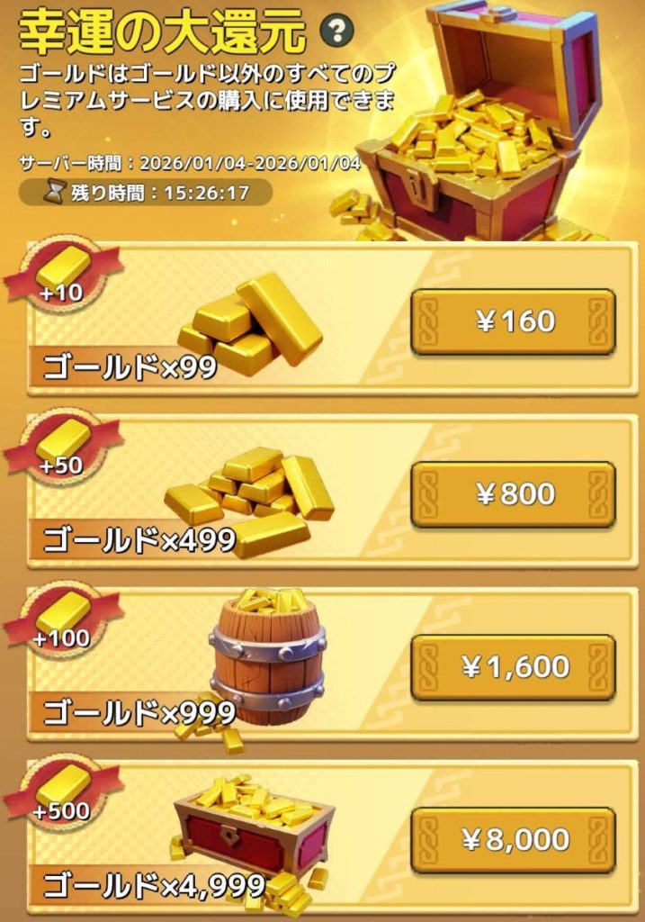 つまり、800円のゴールドを購入すると800円の課金案件がクリア扱いになります