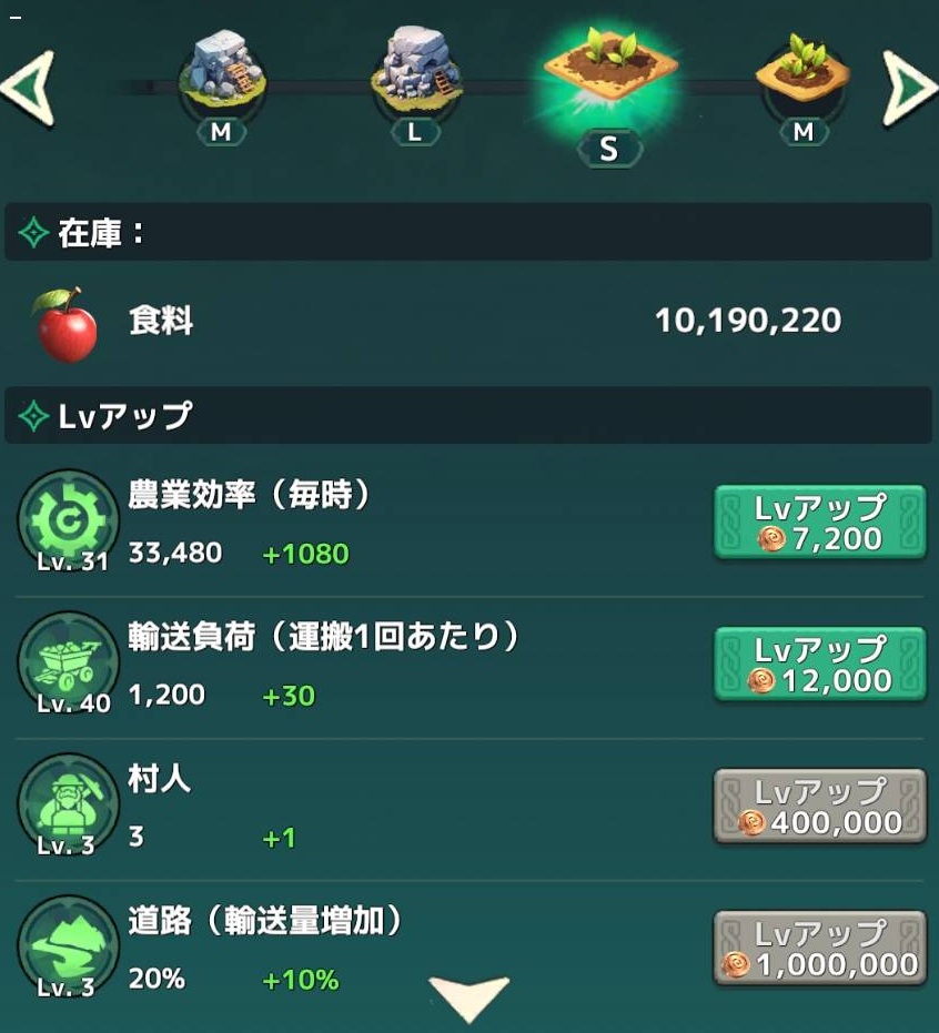 食料は今回かなり余裕があったので輸送強化はLV4に上げなくても良いと思います