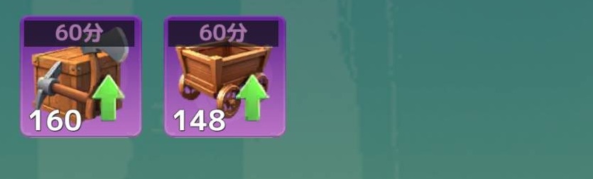 木材/石材/鉄鉱が残り10時間だったので140個残しでした