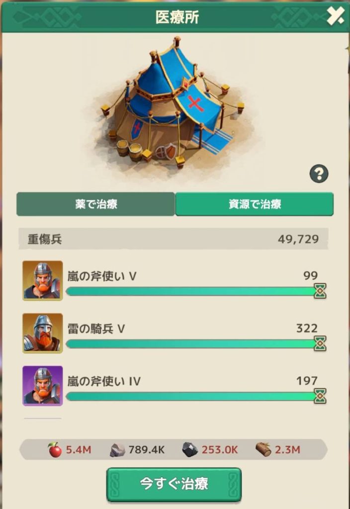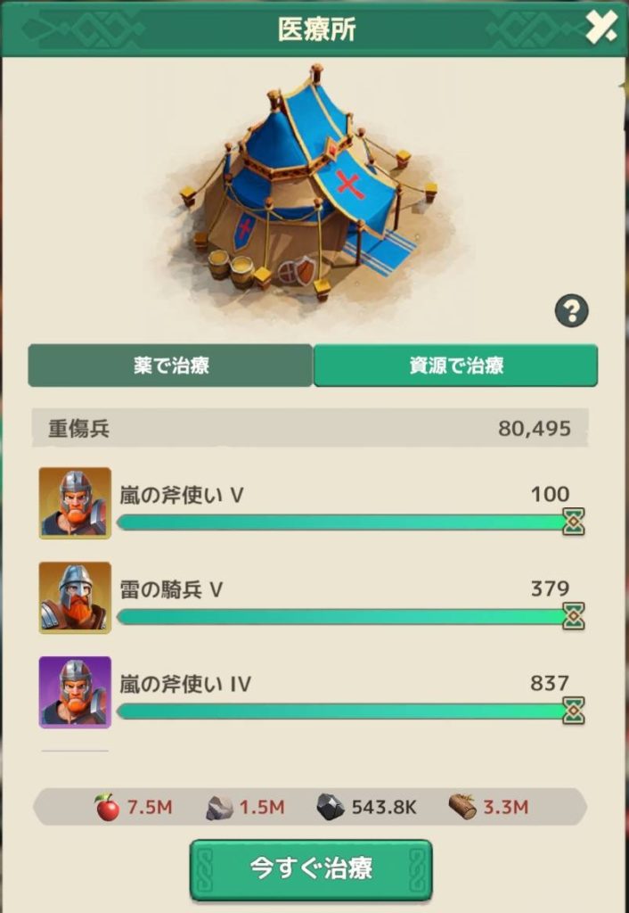 食料と木材は余裕がありますので、レベル3以上をポーション治療
