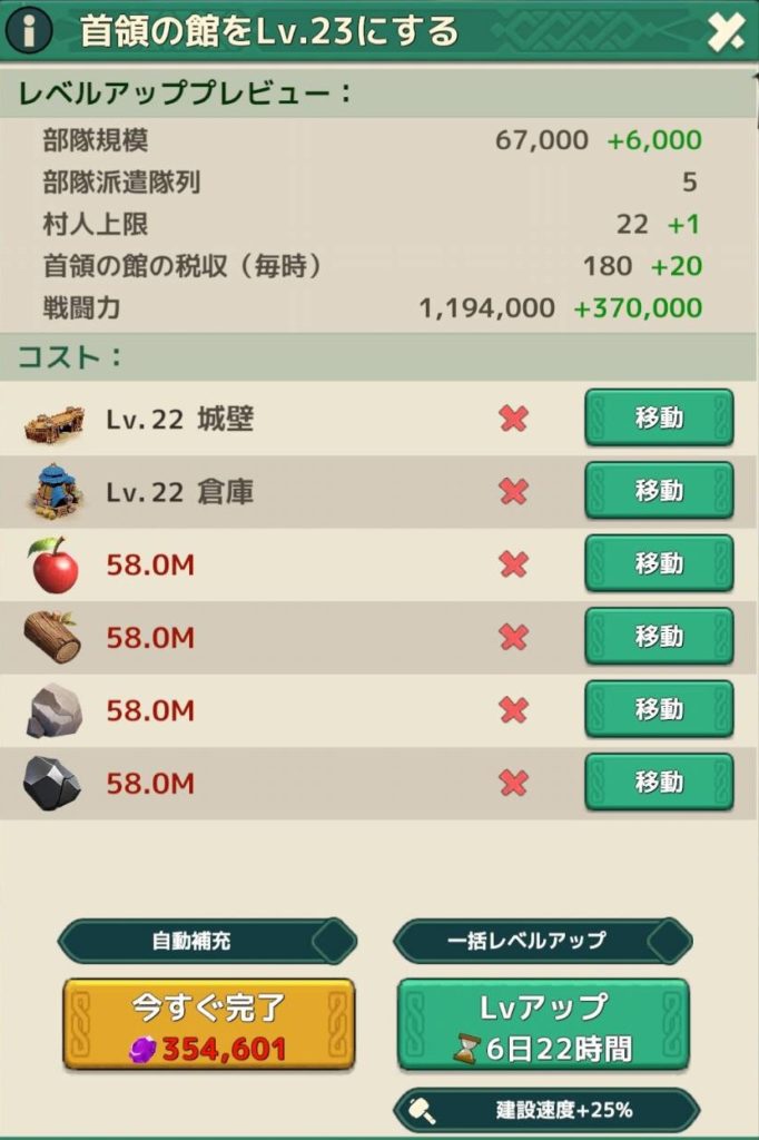 大体の城ゲーが資源か加速のどちらかが不足するのですが、ここ最近の城ゲーは資源が不足気味です
