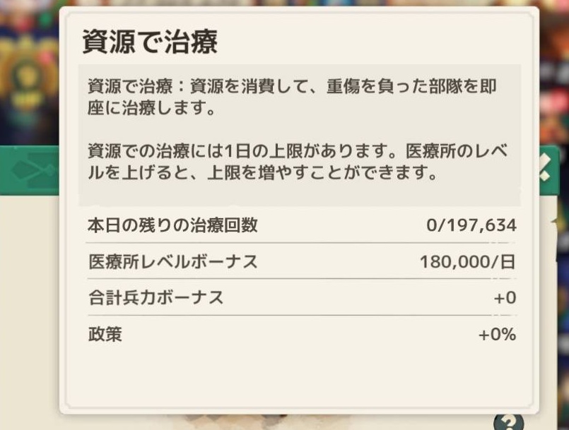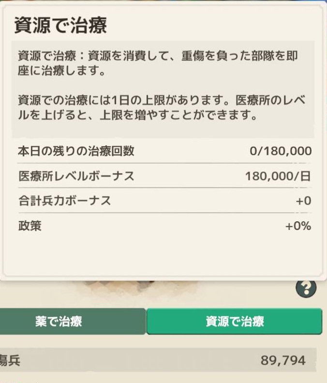 資源治療が190000で1日の上限は30万体でした