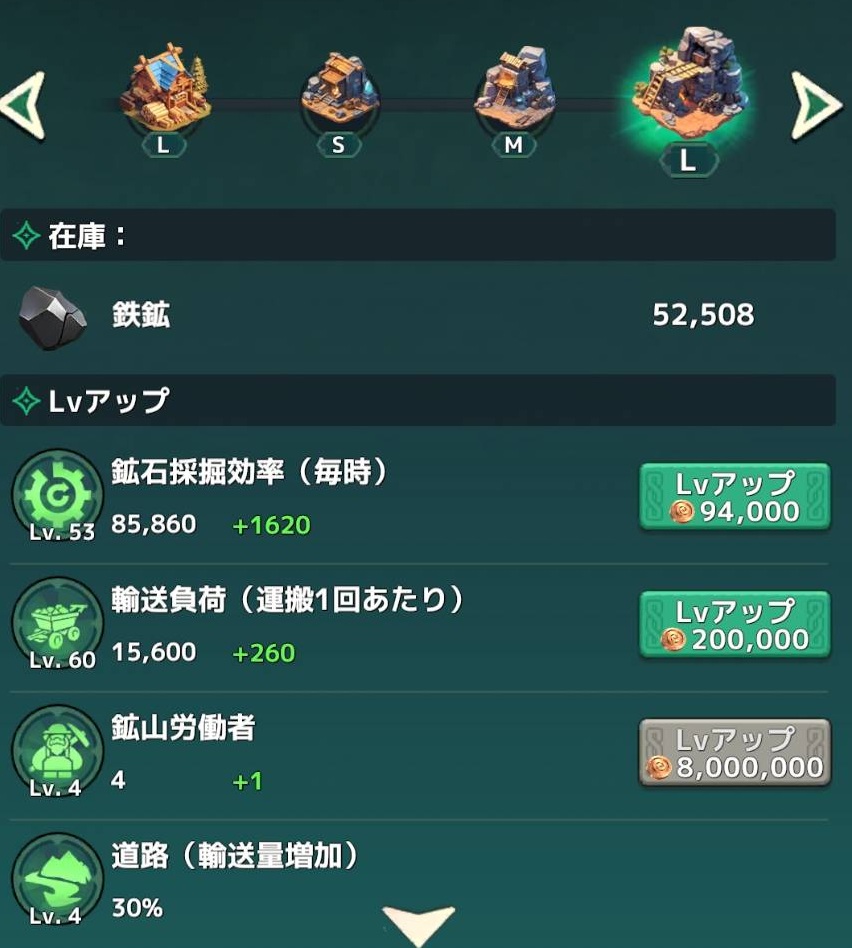 レベル4で鉄鉱が追加されます