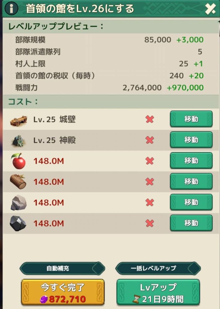 24→25が2億くらい資源が必要だったので、25→26は3~4億は必要になりそうです