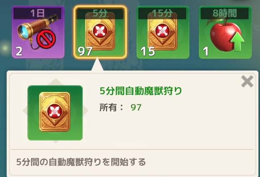 一応自動魔獣狩りアイテムもイベント等で貰えるのですが