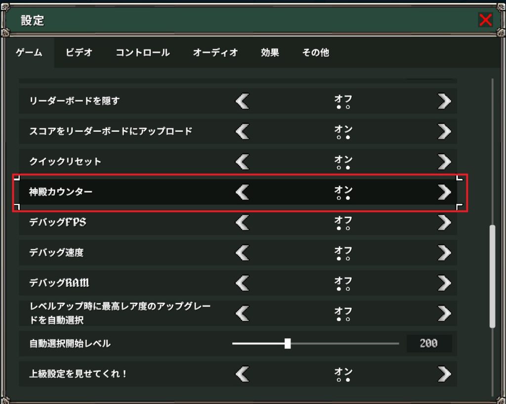 ですので、自分はクオンティティに関してはトグラーでOFFにはしないけれど、序盤のチャージの祠で弾数の選択肢が出てきたら取らないようにはしています