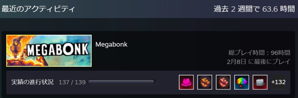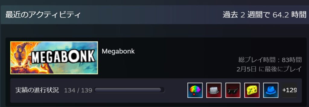 さて、今回のMegabonkで通算221個目の全実績(トロコン)となりました