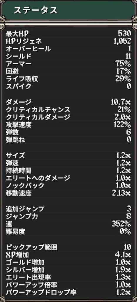ただ、最序盤に出現した場合だと弾数とライフ吸収が同時に出たら弾数を優先しています。当然ですがクオンティティ本がある場合はライフ吸収を選びます
