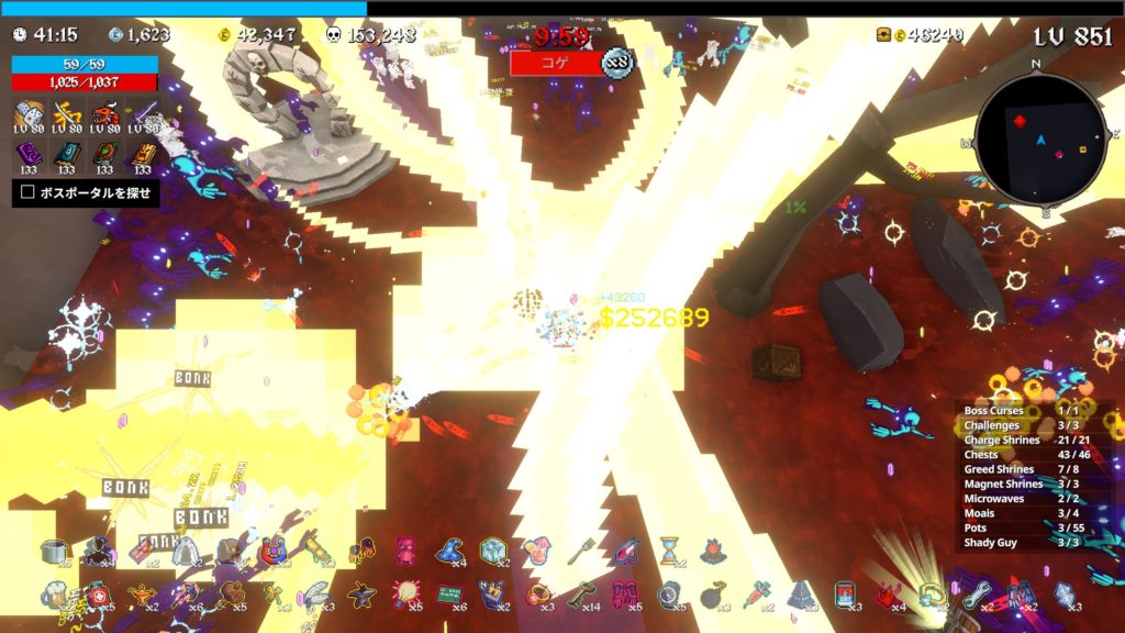 恐らく「Megabonk 実績」とかで検索してくる方が殆どだと思いますので、ある程度の操作感や強キャラ、強アイテムは掴めていると思いますので・・・