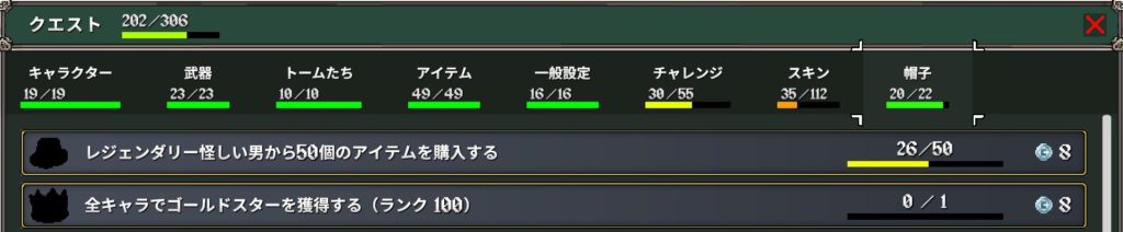 残りの実績もザッと見た感じだと面倒なのがチャレンジ30個クリアくらいだったので、頑張ればいけるやろ・・・みたいな感じで埋め始めたのですが・・・