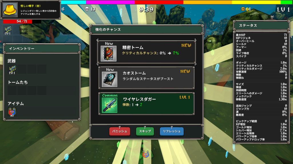 武器の残り1枠に関してはサイコロ/雷撃の杖/ショットガン/スナイパーライフルを自分は好んで使っていました