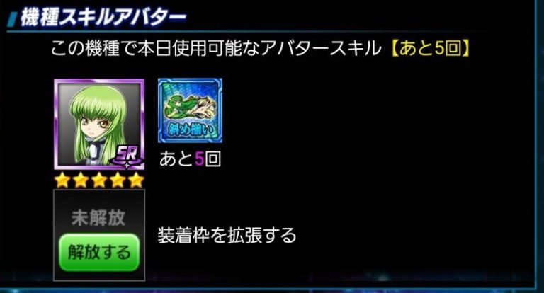 スキル使用制限が機種毎では無く、スキルアバター毎に付与されているタイプだったらまだ使い道はあったかもしれませんが、基本的に忍野メメで5回使用してしまうのでこちらの出番は二度と無さそうです・・・