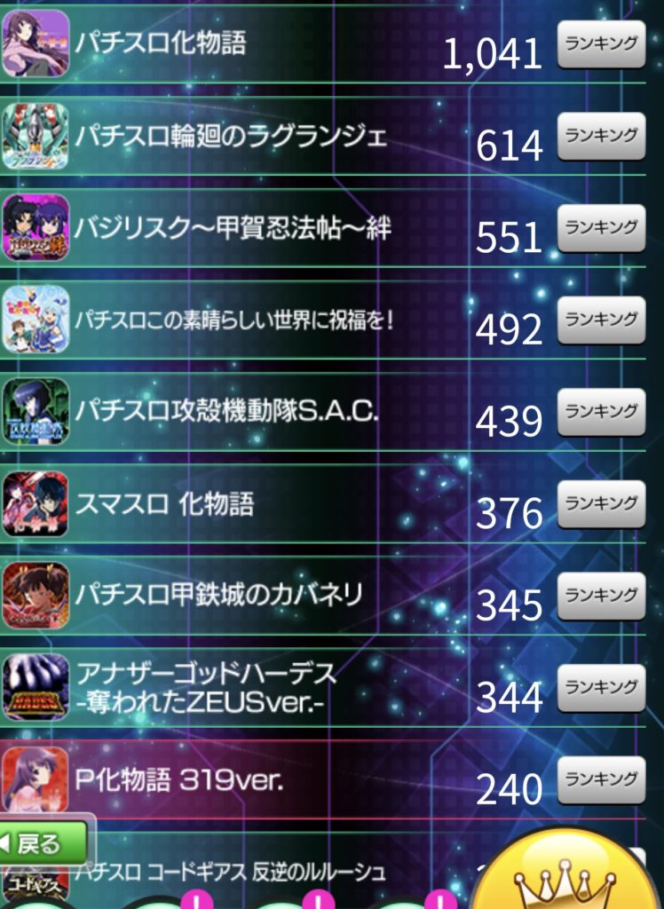 更に、カバネリと比べてバジリスク絆はポイント報酬でしたので所持者も多く、一撃ランキングも狙いにくい機種なのでここも評価は下がりそうかなぁと