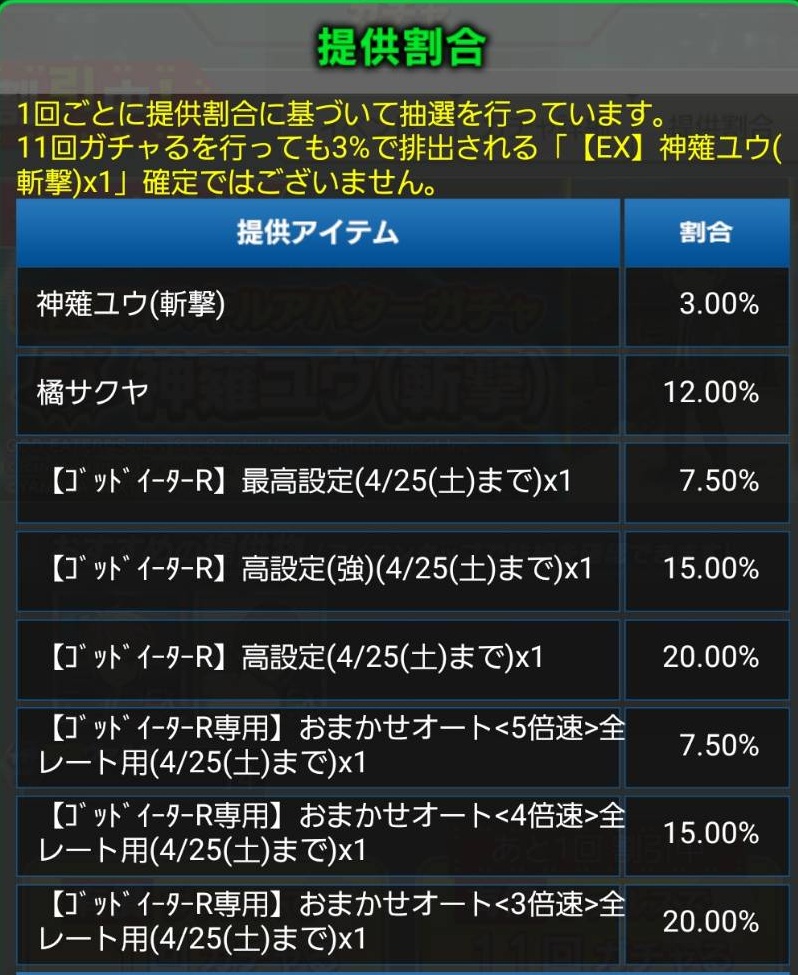 ガチャ初回半額+最高設定ガチャ連打の方が良さそうな気もしますね