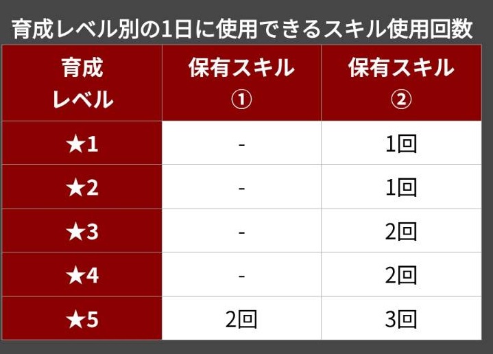 スキル自体は1日5回まで使えるので、R+SRで5回分使用出来ます