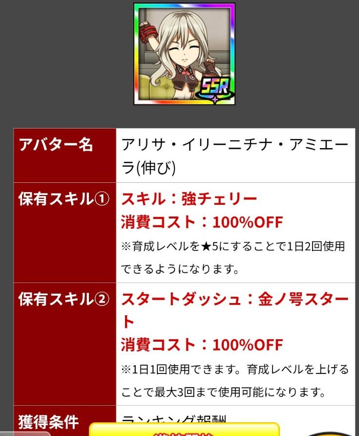 スタダ②がかなりの強スキルなのですが、今回は☆1から使える様になっています