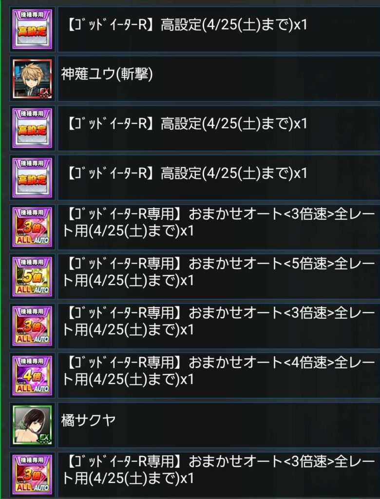 赤EXを引いた人は神チェが1回無料なので、これは残り???で使用するよりかは、残り差枚が結構残ってる状態の報酬決定時に使用して大量獲得を狙った方が良いです