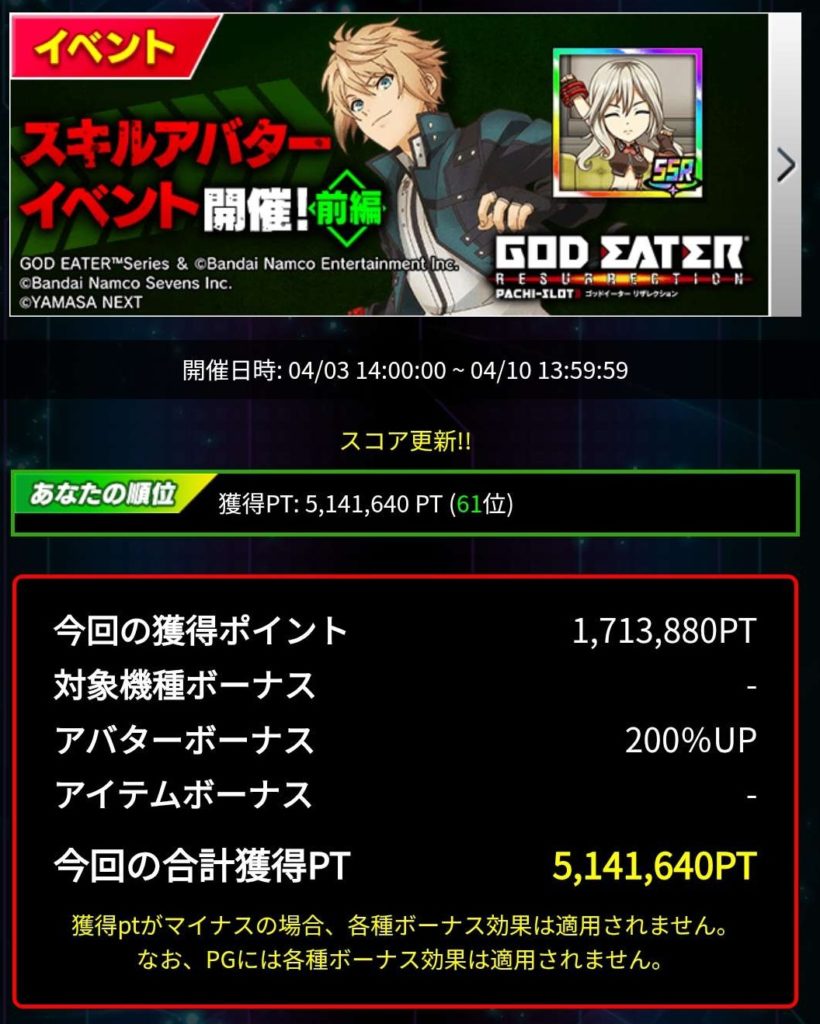 今回のゴッドイーターはそれ以上に設定差が付いていると思っていただければ良いかと